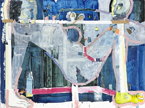 "During the process of making the work, Plessen often physically turns the canvas 90 or 180 degrees as a means of re-positioning or confounding a resolute arrangement of the image. As he explains, in one position ‘my relationship to the painting feels familiar/grounded; when I turn the canvas, this familiar relationship – facing an object that faces me – is dissolved. In this process the location that I am used to occupying when looking at a painting is moving away from me to reappear at the centre of the painted image, unpopulated’. In doing so, Plessen’s aim is to liberate the image from a stable, singular reading to multiple and simultaneous viewpoints."
